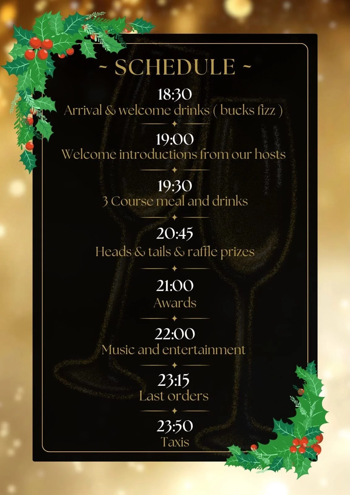 Dress to impress for our first formal Christmas event and be ready for great food, company, fun and prizes.